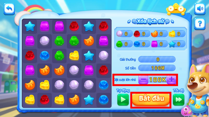 3. Tiền thưởng loại bỏ kẹo = Lượng tiền cược x Tỷ lệ trả thưởng kẹo (xem bảng trả thưởng)
